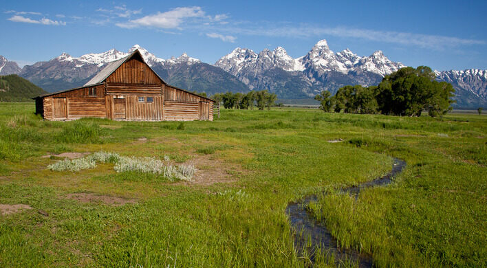 이 헛간은 미국에서 가장 사진이 많이 찍힌 건물 중 하나입니다. 그 이유는 헛간이 Teton Range 기슭에 자리 잡고 있으며 최고의 경치를 찍을 수 있는 완벽한 위치에 있습니다.