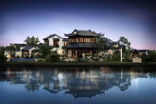 쑤저우의 두슈 호수 남쪽 해안에 위치하고 있는 72,400평방 피트의 섬에 32개의 욕실과 침실, 와인 저장고, 호화로운 정원 및 장식용 연못이 있는 것으로 알려졌으며 전통 중국식 건축물입니다.