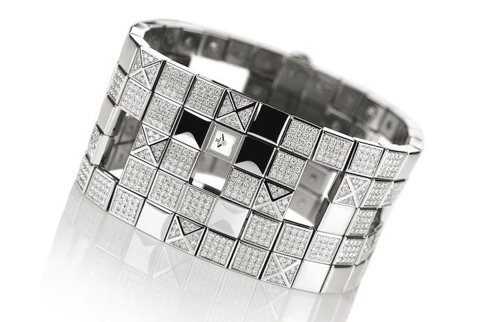 팔찌 모양의 이 시계는 다이얼이 사파이어로 되어 있고 576개의 다이아몬드를 팔찌에 장착할 수 있습니다.
