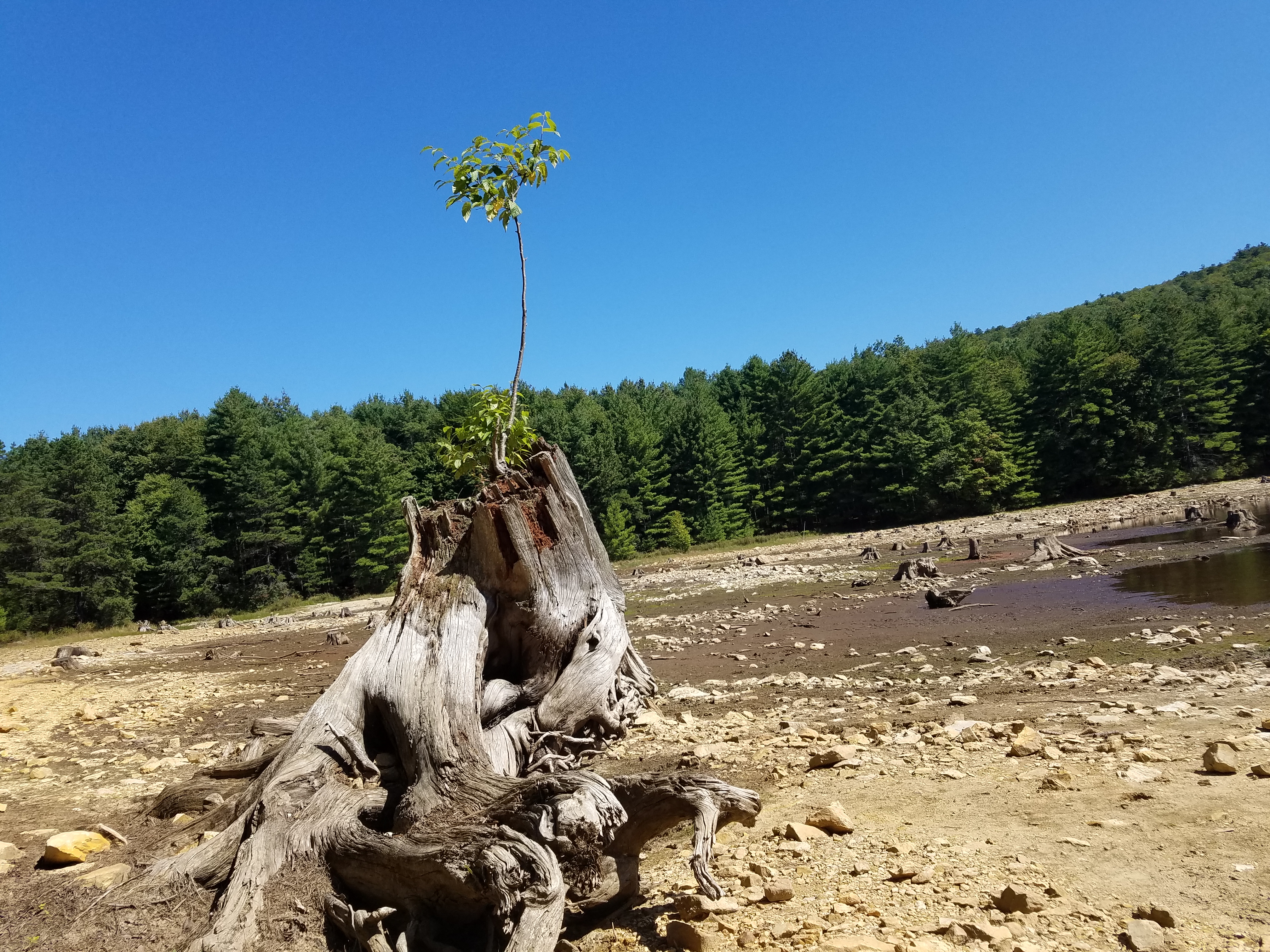 호수를 만들때 배어진 나무가 "나도 한때는 화려하고 좋았었던 때가 있었다"라고 말하는 듯.