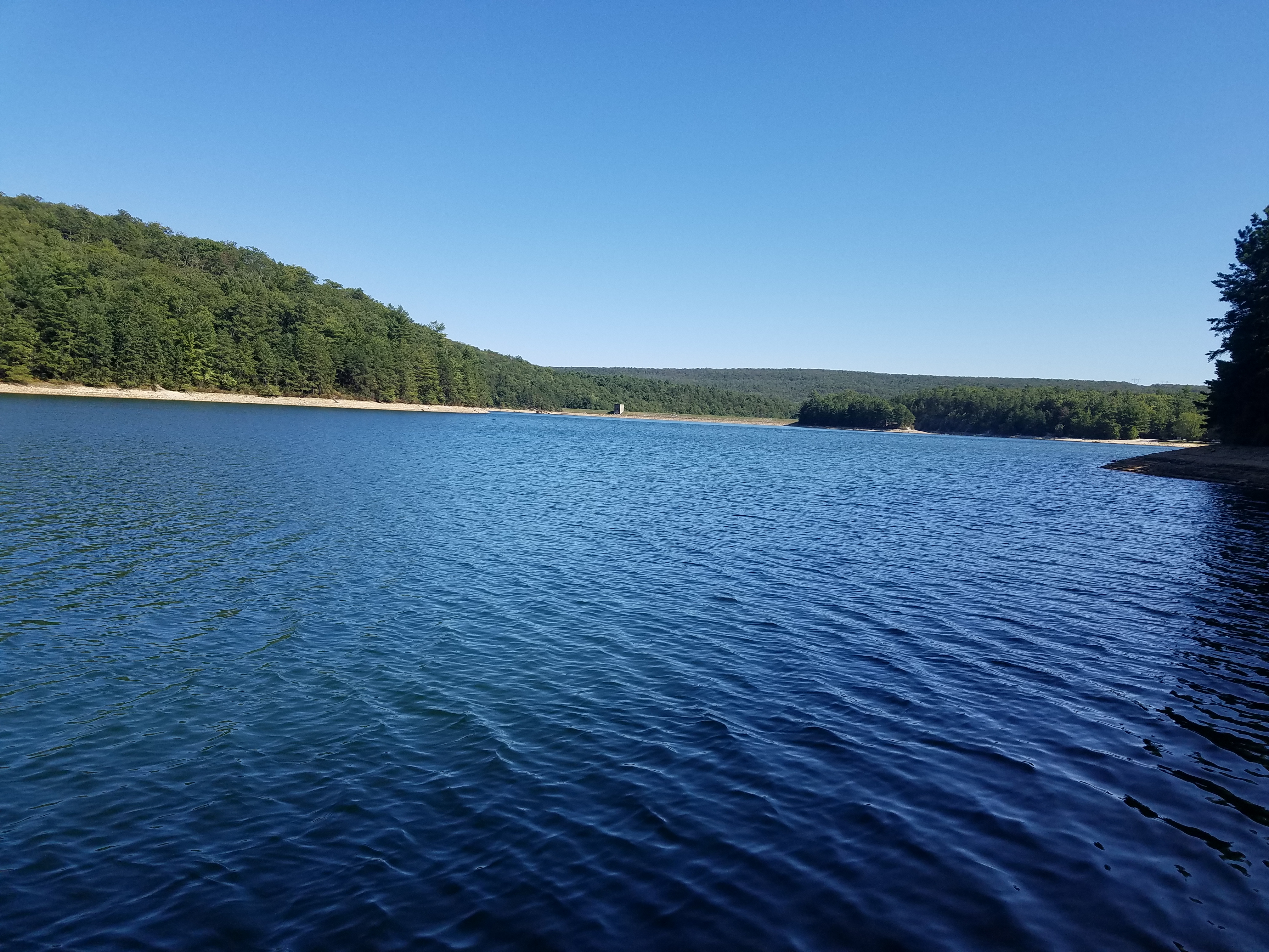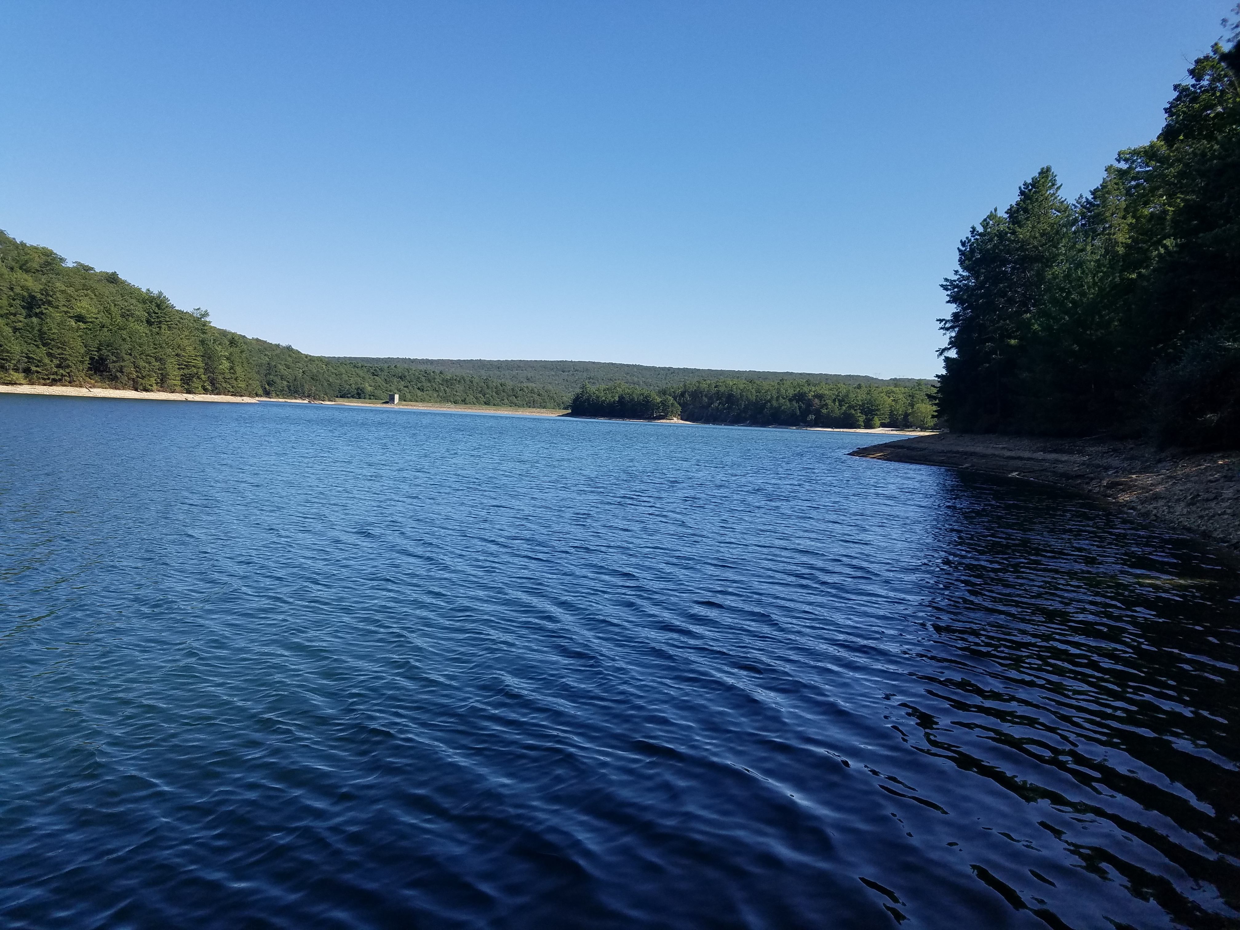 집에서 한시간 반 정도의 운전거리에 있는 넓은 호수는 어느 한 지역에, 지역 상수원이다