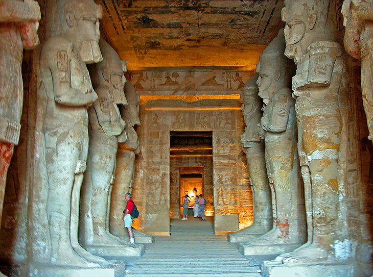 기원전 1244 년에 지어진 Abu Simbel에는 산비탈에 새겨진 두 개의 사원이 있습니다. 두 사원 중 더 큰 사원에는 입구에 앉은 파라오 Ramesses II (기원전 1303-1213)의 거대한 동상 4 개가 있으며 각각 높이는 약 21 미터입니다. 사원의 입구는 10 월 22 일과 2 월 22 일의 이틀 동안 햇빛이 내부 성역에 비치고 파라오를 포함하여 벤치에 앉아있는 세 개의 동상을 비추는 방식으로 지어졌습니다. 역사가들은이 날짜가 그의 대관식과 탄생을 기념한다고 생각합니다.