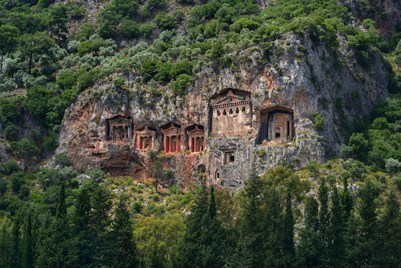 Lycian Tombs는 바위 표면에 직접 조각되어 있습니다.