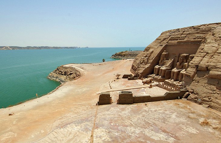 이 쌍둥이 사원은 원래 기원전 13 세기 나일강에 아스완 하이 댐이 건설된 후 형성된 거대한 인공 저수지 인 나세르 호수가 조성되는 동안 침수되는 것을 피하기 위해 1960 년대에 완전히 이전되었습니다.