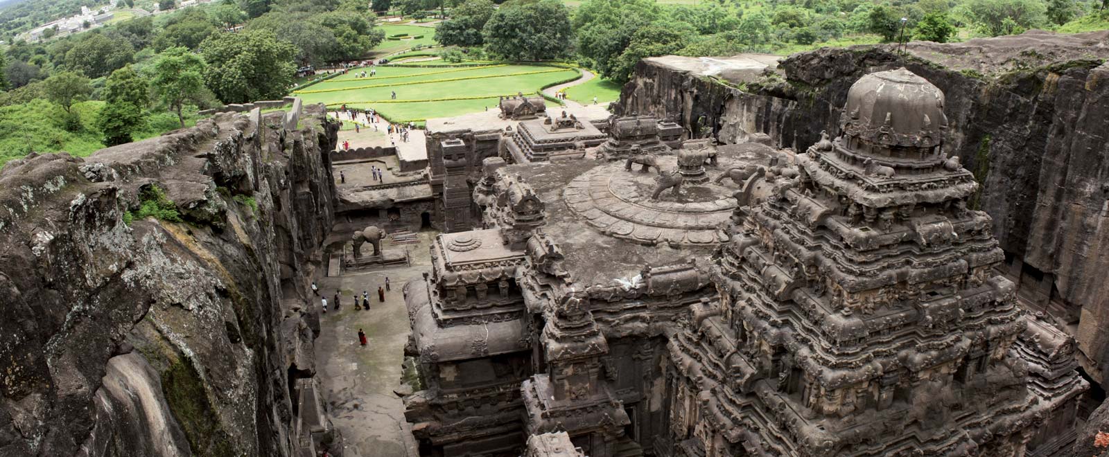 6 세기에서 8 세기까지 지역 절벽 바위에서 조각된 인도중부 Maharastra의 신성한 장소로 불리는 Ellora (Elura라고도 하며 고대에는 Elapura라고도 함)며 유네스코에 의해 세계 문화유산으로 등재되었으며 힌두교 , 불교 , 자이나교 사원과 기념물로 유명합니다. 가장 멋진 예술품으로는 8 세기 CE Kailasa 사원으로, 높이 32m는 세계에서 가장 큰 암석에 조각한 기념물입니다.